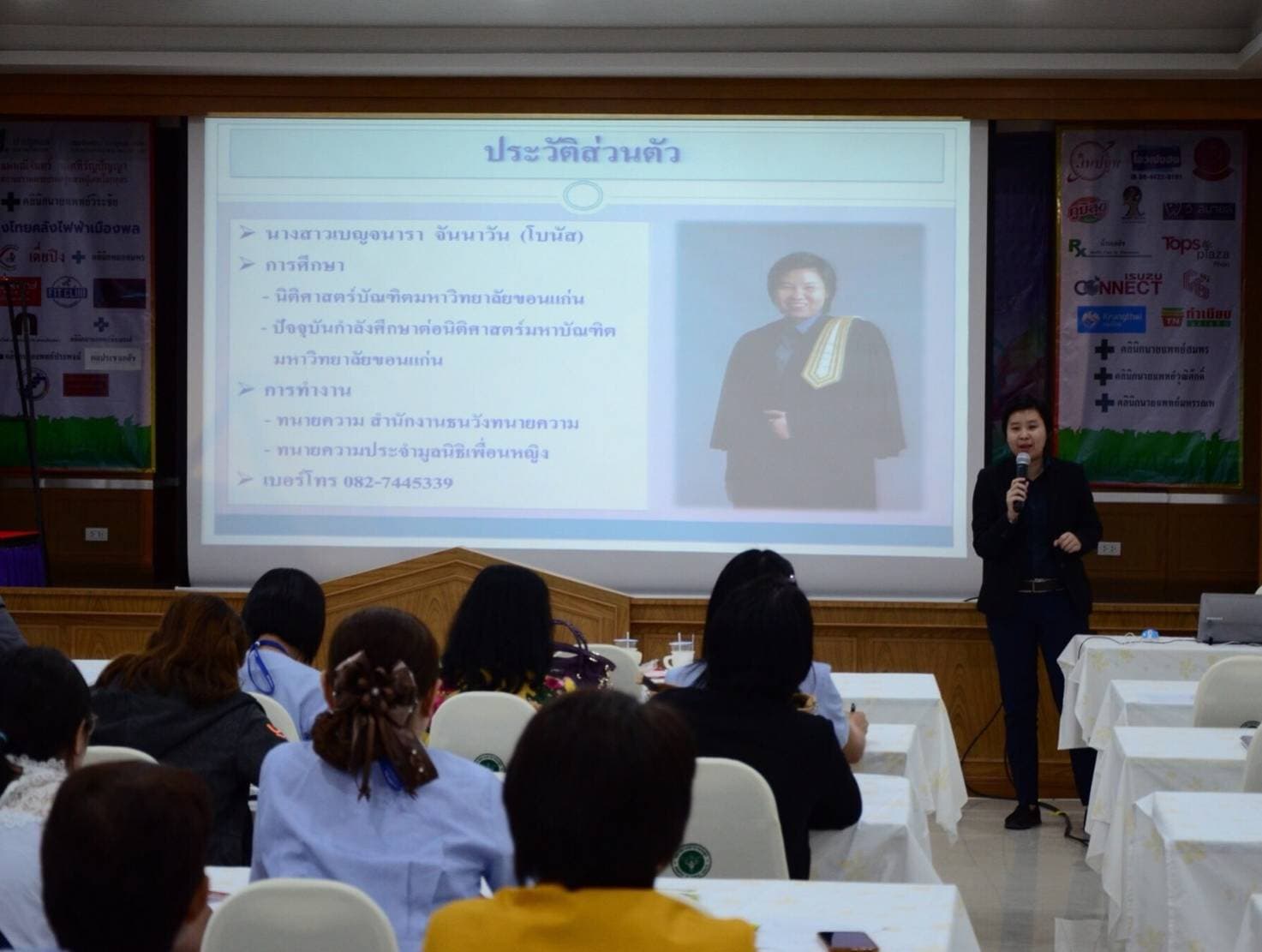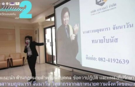 วิทยากรบรรยายกฎหมายครอบครัว กฎหมายผู้สูงอายุ กฎหมายเกี่ยวกับเด็ก กฎหมายเกี่ยวกับเพศ และพระราชบัญญัติค่าตอบแทนผู้เสียหายและค่าทดแทนและค่าใช้จ่ายแก่จำเลยในคดีอาญา